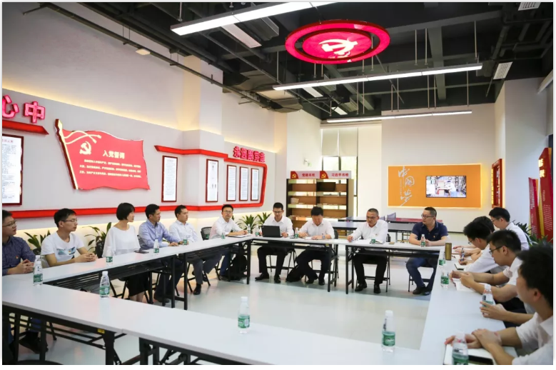 隨后,電科院儲能黨支部來到智光品牌展廳參觀。曹承鋒書記從發展歷程、技術研發成果、主營產品和服務等方面展開了詳細介紹,電科院儲能黨支部給予了智光高度評價。參觀后,雙方對未來能源領域發展,以及智光的戰略規劃等方面進行了深入的探討。