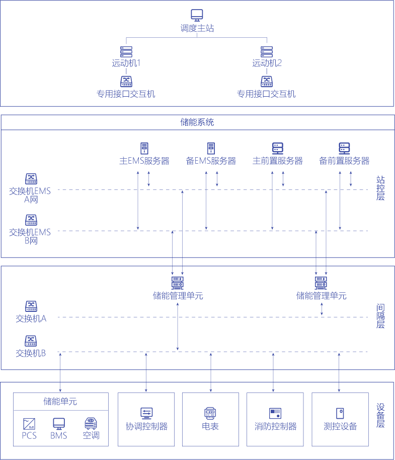 儲(chǔ)能EMS能量管理系統(tǒng)具備實(shí)時(shí)監(jiān)控、數(shù)據(jù)采集、數(shù)據(jù)處理、系統(tǒng)監(jiān)視、設(shè)備模型管理、事件順序記錄(SOE)、事件及報(bào)警處理、遙控遙調(diào)/能量調(diào)度AGVC/一次調(diào)頻、儲(chǔ)能運(yùn)行策略等功能。系統(tǒng)支持多種工業(yè)實(shí)時(shí)以太網(wǎng)協(xié)議、工業(yè)總線協(xié)議以及電力行業(yè)通訊協(xié)議,包括IEC104、IEC61850等;具備云邊協(xié)同能力和邊緣智能數(shù)據(jù)處理能力,具有完備的安全特性;具備靈活組網(wǎng)方案,覆蓋多種儲(chǔ)能站類(lèi)型。